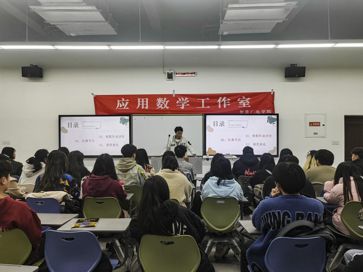 会长谢珂笛对2024年上半年的数学建模和大学生数学竞赛赛事安排进行了讲解,让工作室所有成员了解比赛时间和相关信息,积极做好赛前准备。