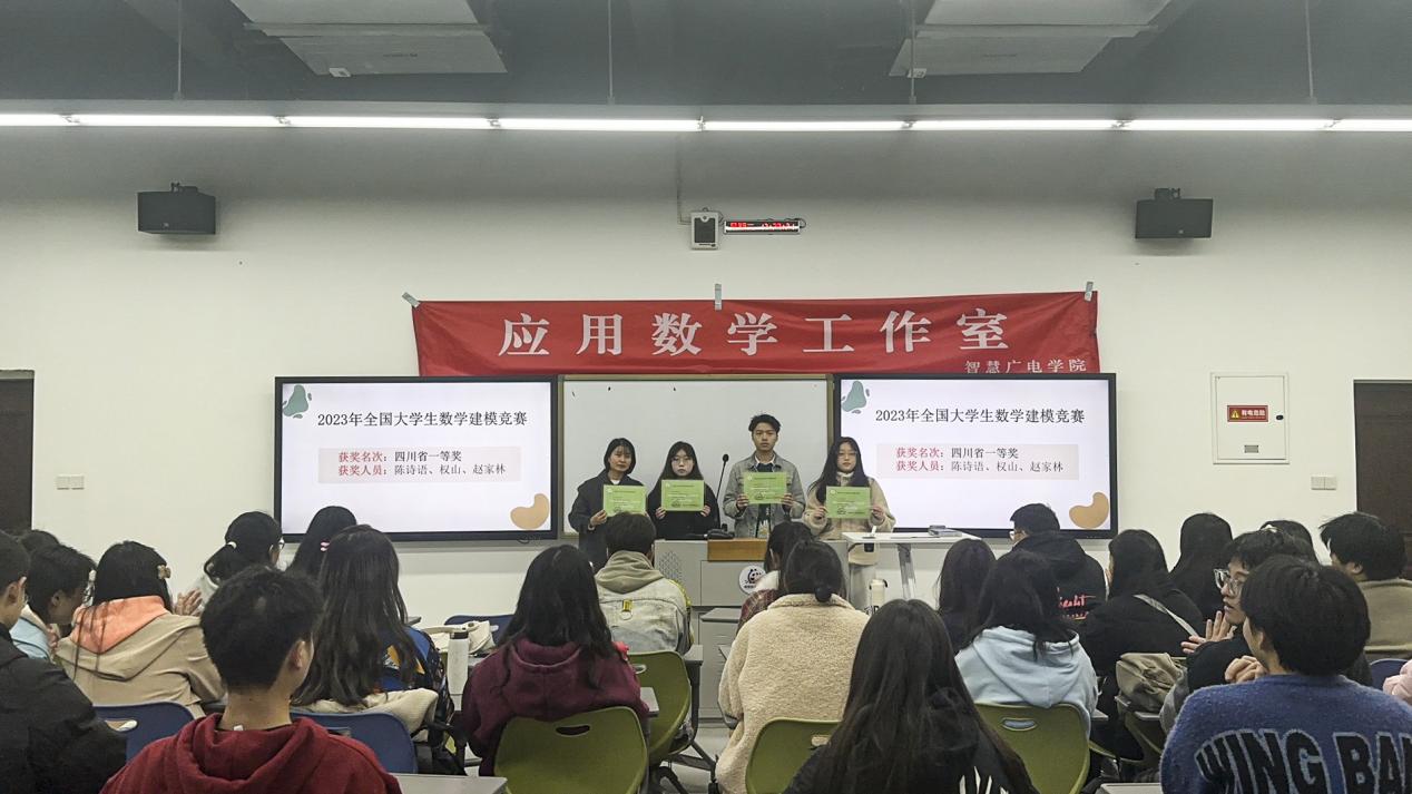 (图 指导老师为在“2023年高教社杯全国大学生数学建模竞赛”国赛四川赛区四川省一等奖获奖队伍颁奖)