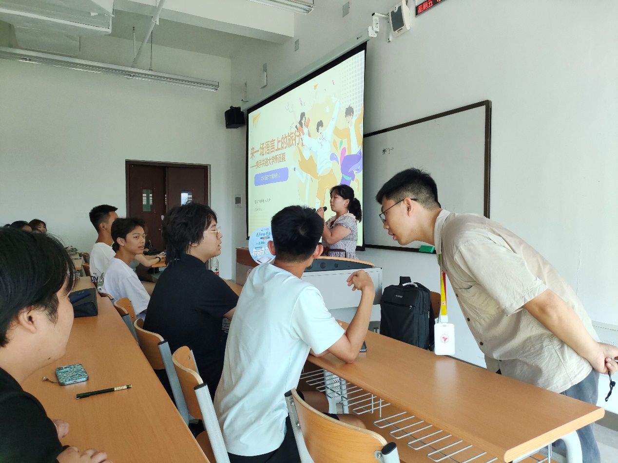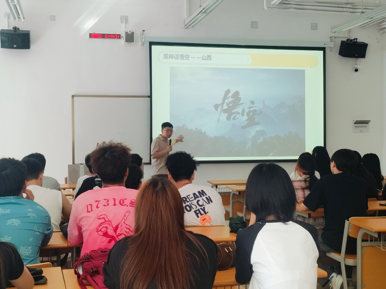 为使2024级新同学们快速了解,相互熟悉。实现“结识一个新朋友、融入一个新环境,转变一个新身份。”的目标。智慧广电学院杜天泽老师给2024级新生们组织了一场别开生面的破冰活动——看“黑神话悟空”跟着导员游山西。活动中杜老师以自己的山西行为引子,通过照片展示与札记分享,围绕假期旅行这一同通之处,引发同学们的共鸣,激起同学们分享自己的旅游经历的兴致,现场气氛活跃,取得了良好的“破冰”效果。