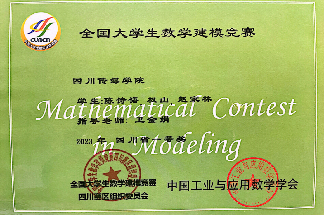智慧广电学院学子获得全国大学生数学建模竞赛四川赛区一等奖