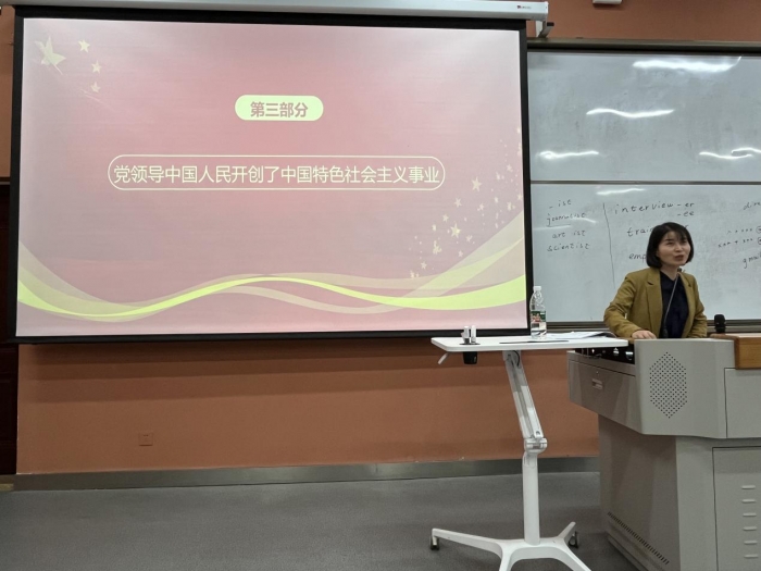 卫金娟老师深入介绍了中国共产党成立的重要意义和艰辛路程。并强调全体学生要认真贯彻落实党的先进作风,把学习党课作为一项重要的任务,不断深化对党史的理解和领悟,坚定理想信念,增强自身修养,增强担当意识。