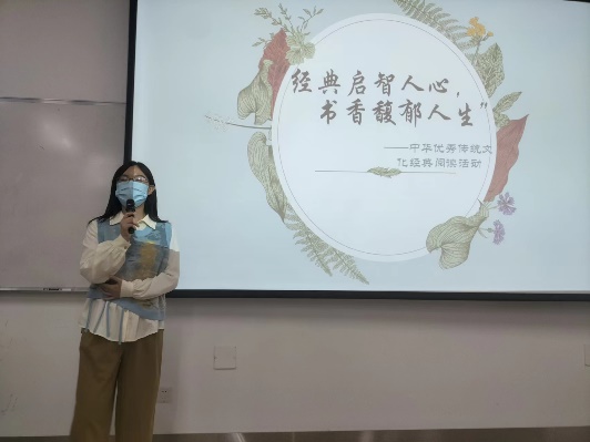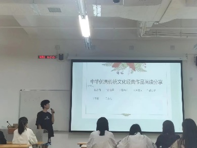 分享会于4月21日晚19:00正式拉开帷幕。张老师首先发表开场致辞,分别就什么是中华优秀传统文化、为什么要阅读传统文化经典,以及当下时代如何更好地走近和弘扬传统文化三个方面进行了深入浅出的讲述,她指出阅读传统文化经典对于个人素养提升、人格塑造以及审美修养的重要意义,以及中华优秀传统文化的源远流长和独特魅力。在观赏了以优秀传统文化为主题的节目《年锦》之后,同学们更是对传统文化的美有了更深的体会,随后,读书分享会正式开始。