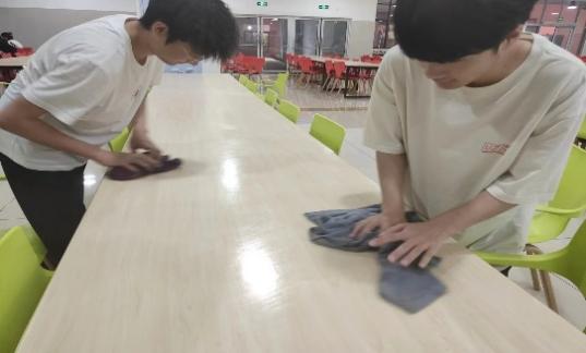 活动组织得井然有序,每位同学都根据事先精心安排的分工,各司其职,默契配合。有的同学驻足于洗碗区域,勤勉地更换着池中的用水;有的则细心地清洗着抹布,确保每一块都是干净无暇,为后续的清洁工作提供最佳工具;还有的同学则手持抹布,细致地拂过每一张餐桌,将光洁如新的就餐环境呈现给每一位师生。这一幕幕场景,如同一幅幅生动的画面,展现了当代大学生积极向上的风貌。
