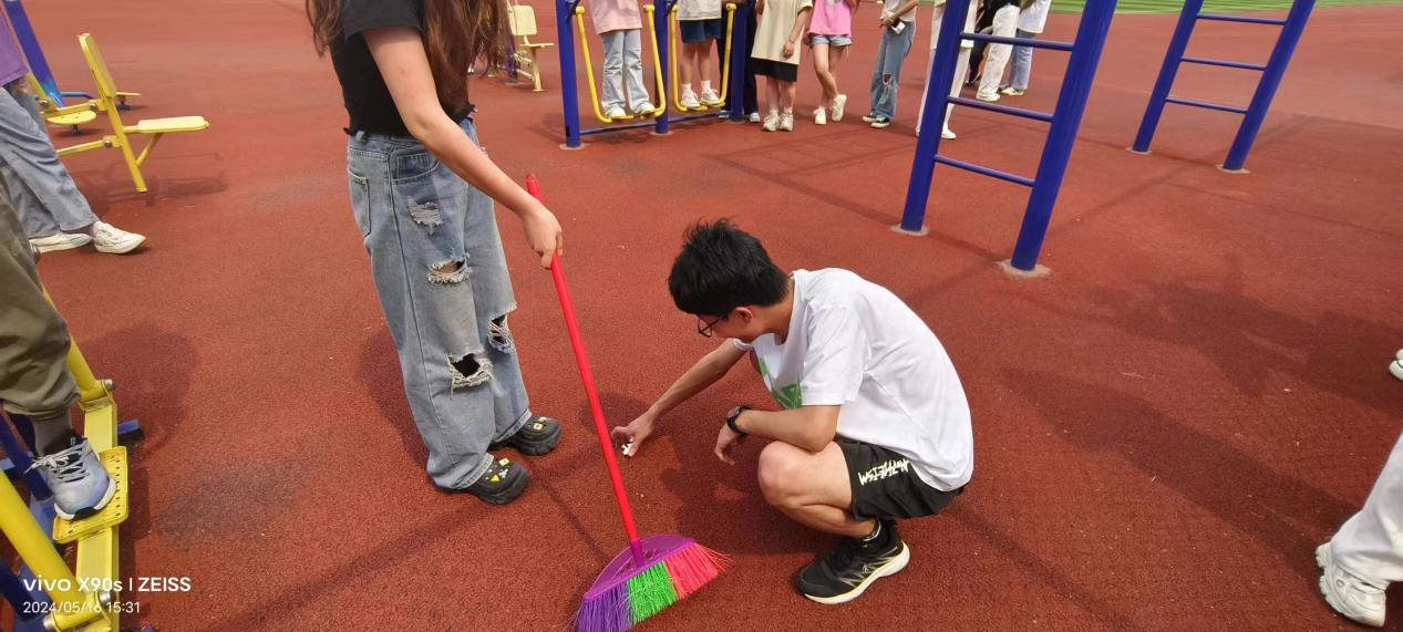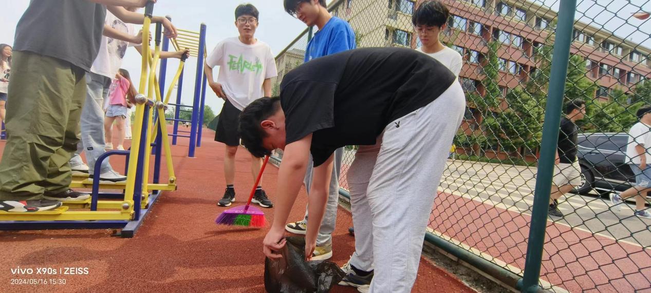 2024年5月16日下午,2023级计算机科学与技术专业全体同学对学校西区操场及篮球场的垃圾进行清理,监督同学们不乱扔垃圾,维护学校良好的卫生,创造更加美好的学校环境。在张老师和班委的带头组织下,同学们积极参与,对篮球场和操场公共区域进行了详细的清扫,让同学们有一个舒适的运动的环境。