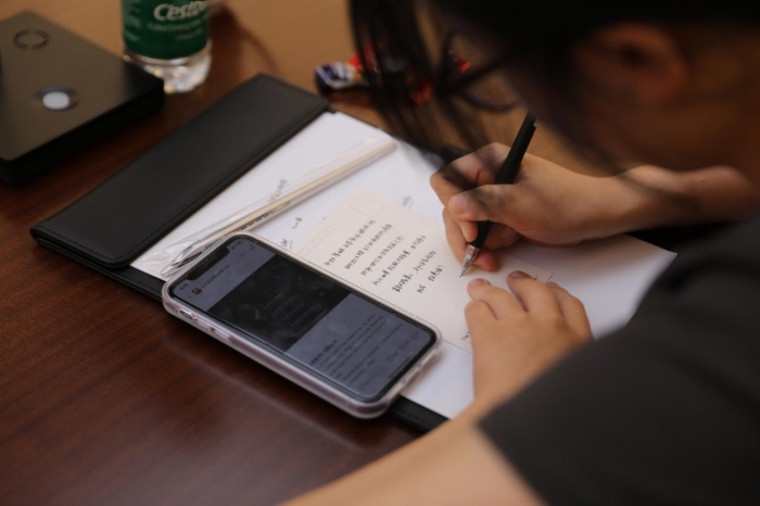 (同学们在明信片上留言)