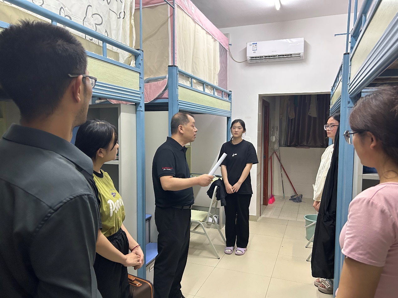 在走访过程中,祝杨文书记为新同学们普及了宿舍安全知识,例举了宿舍内可能会出现的安全隐患以及应对办法。并就一些具体问题提出了希望与建议。祝杨文书记表示,同学们要努力让宿舍成为真正的“温馨小窝”。