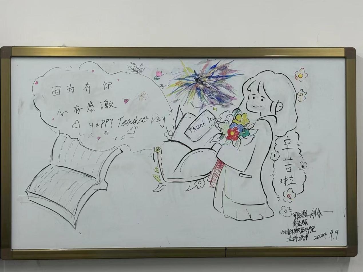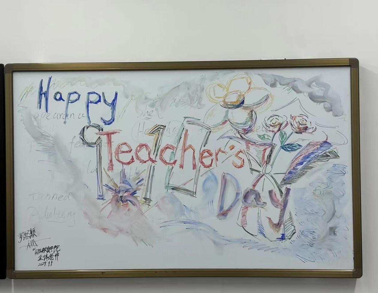 以笔为媒,书写师恩。2024年9月10日,在这个充满敬意与感恩的日子里,一场温暖的惊喜正在校园里悄然酝酿。当清晨的第一缕阳光洒进每间教室,一幅幅由同学们精心设计、亲笔书写的感恩教师主题画跃然于黑板之上,一笔一划都蕴含着学生们对老师的美好祝愿和感激之情。在老师们推门而入的那一刻,同学们起身向老师问好,致以最真诚的祝福。“老师,您辛苦了,祝您教师节快乐!”看到同学们温馨的祝福语和热情的问候,老师们的脸上露出了惊喜与感动的笑容。那笑容里,有欣慰,有幸福,更有对同学们的期许。这些美好的祝福,不仅是一份礼物,更是同学们对老师辛勤付出的认可与感激。令人动容的,还有学生们用心制作的一张张独具创意的祝福卡片,他们将对老师的敬爱与祝福,化作一行行满含温情的文字。这些卡片上有的记录了与老师共度的美好时光,有的表达了对老师辛勤付出的感激之情。这份来自学生心底的祝福也成为了老师们珍贵的礼物。