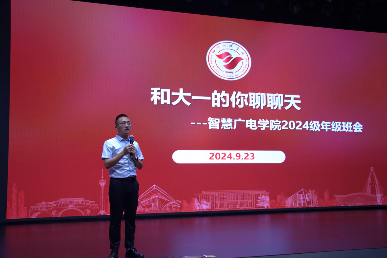 9月23日是2024级新生第一天正式上课,晚间,智慧广电学院在西区学术报告厅召开“和大一的你聊聊天”年级大班会帮助同学们明确未来发展方向,树立崇高目标理想。近400多名智慧广电学院2024级新生参加此次活动。会议由智慧广电学院党委副书记陈亮书记主讲。