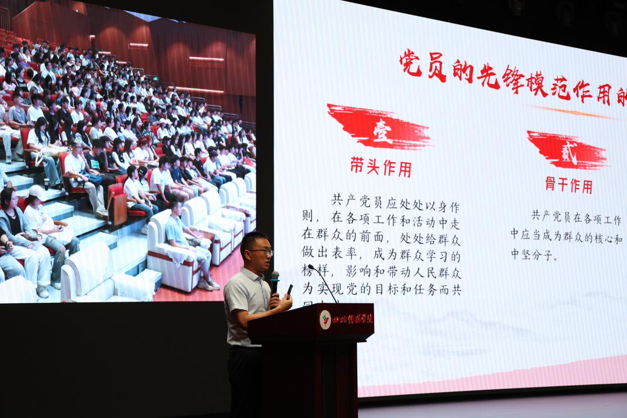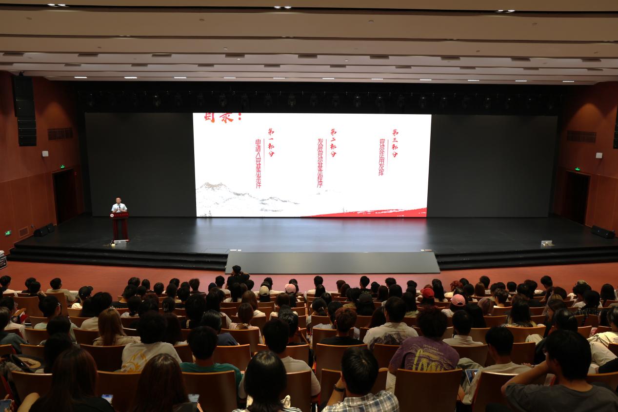中国共产党党员,既是一个身份,也是一份责任。为进一步让2024级新生找准前进目标,明确前进方向,9月23日,中共智慧广电学院分党委在西区学术报告厅召开“党的基本知识理论学习会”。会议由智慧广电学院党委副书记陈亮书记主讲,近400多名智慧广电学院2024级新生参加此次会议。
