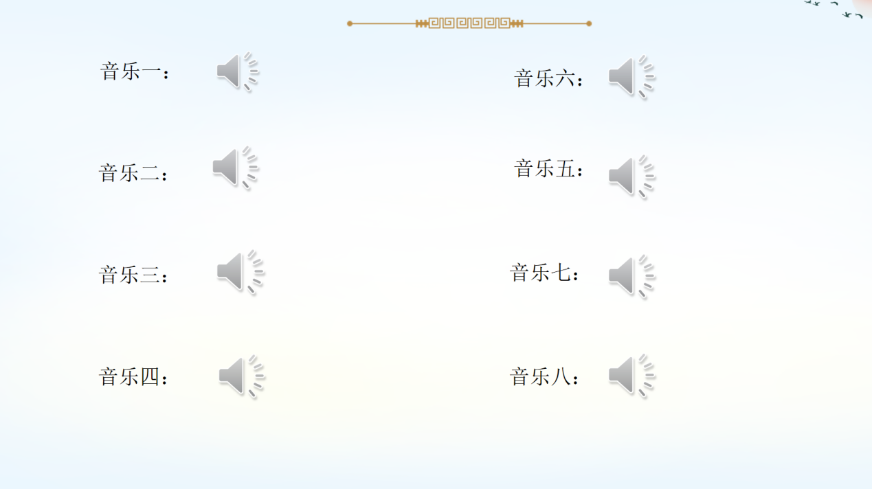 活动开场,同学们一起欣赏《经典咏流传》《知否知否》《采薇》《年锦》《see you again》《take my hand》等经典音乐歌曲,感受古典与现代交织下的不同音乐风格。现代流行音乐节奏感强,旋律优美,歌词简洁易懂,能够迅速引起听众共鸣,适合各种场合。古典诗歌元素包括韵律、节奏、意象等,通过精炼的语言和深远的意境,打动读者的心灵。诗歌与音乐、传统与现代的融合可以产生独特的艺术效果,如《采薇》《知否》这类歌曲,既有诗意又有旋律。通过古典诗词的赏析与音乐结合,加深同学们对中华传统文化的认识与情感连接,激发对古典文学与音乐的兴趣。引导同学们欣赏不同风格的音乐作品,包括古典诗词配乐及现代流行音乐,培养多元化的审美情趣。