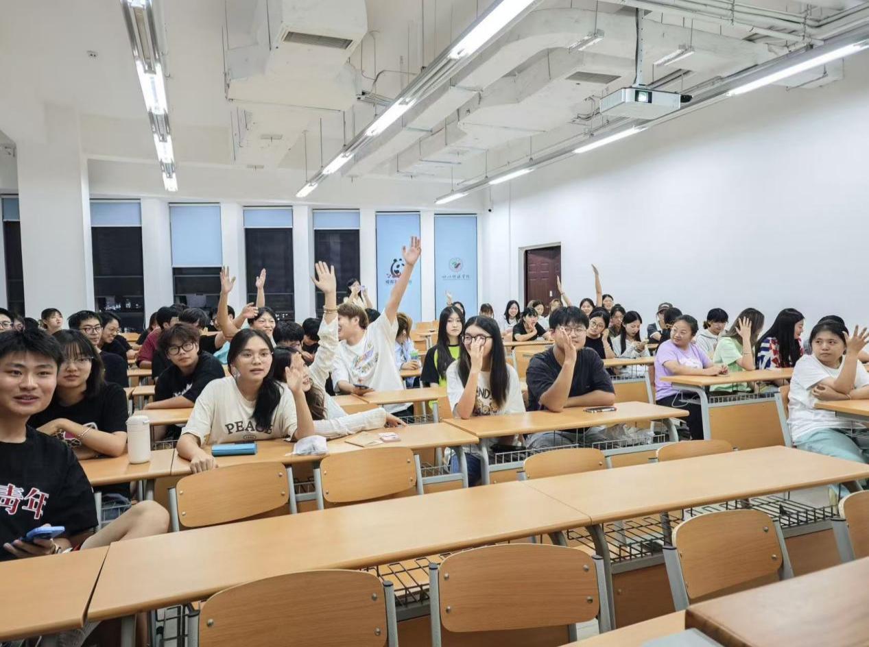 接着,在飞花令、听歌识曲等游戏互动环节,同学们积极参与,争先举手回答问题,现场氛围活跃。
