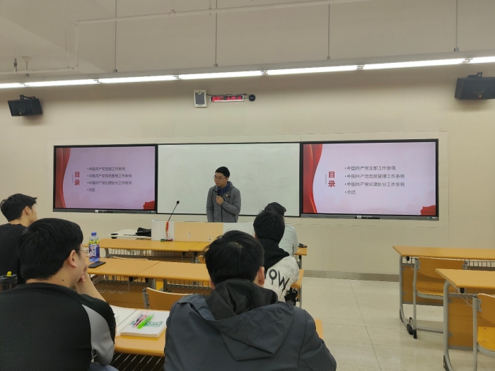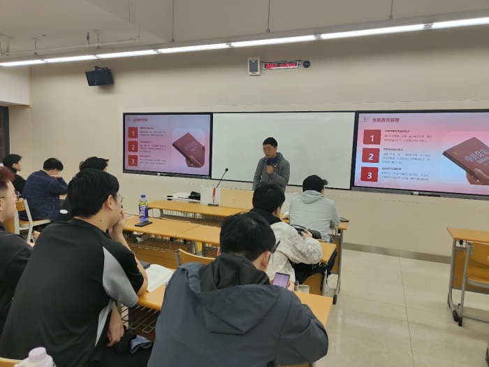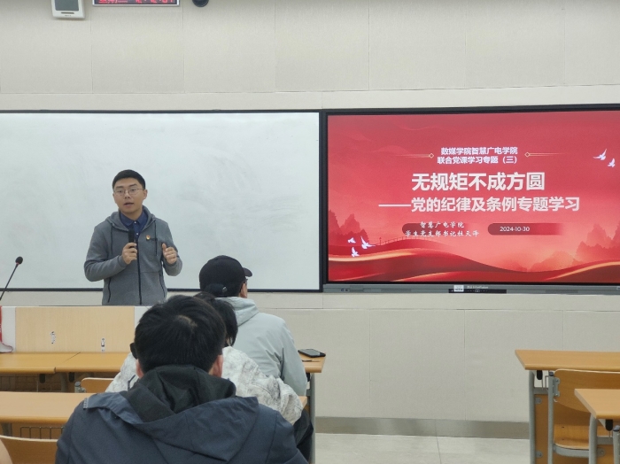 本次“无规矩不成方圆—党的纪律及条例”专题党课由智慧广电学院学生党支部书记杜天泽同志主讲,智慧广电学院与数字媒体与创意设计学院共计23位党的发展对象参加。