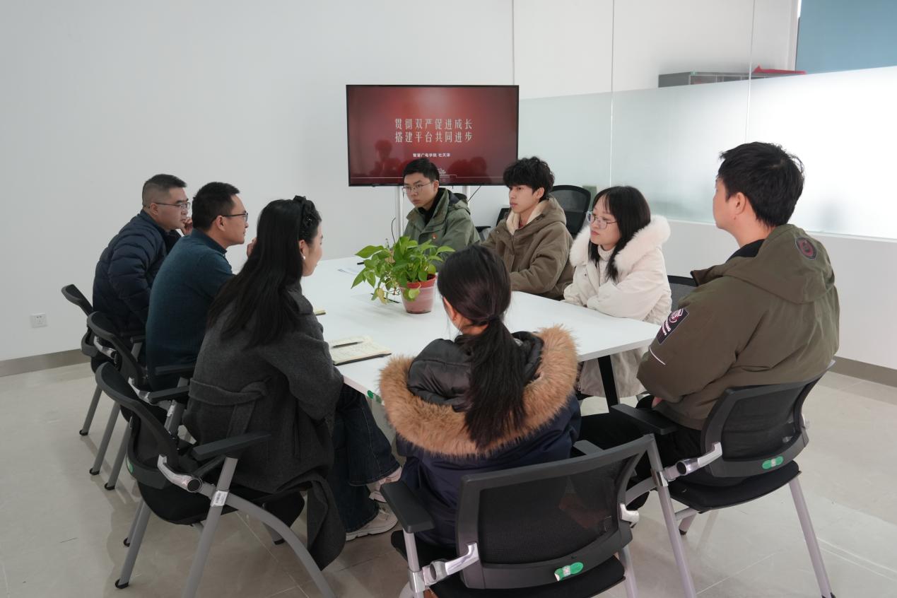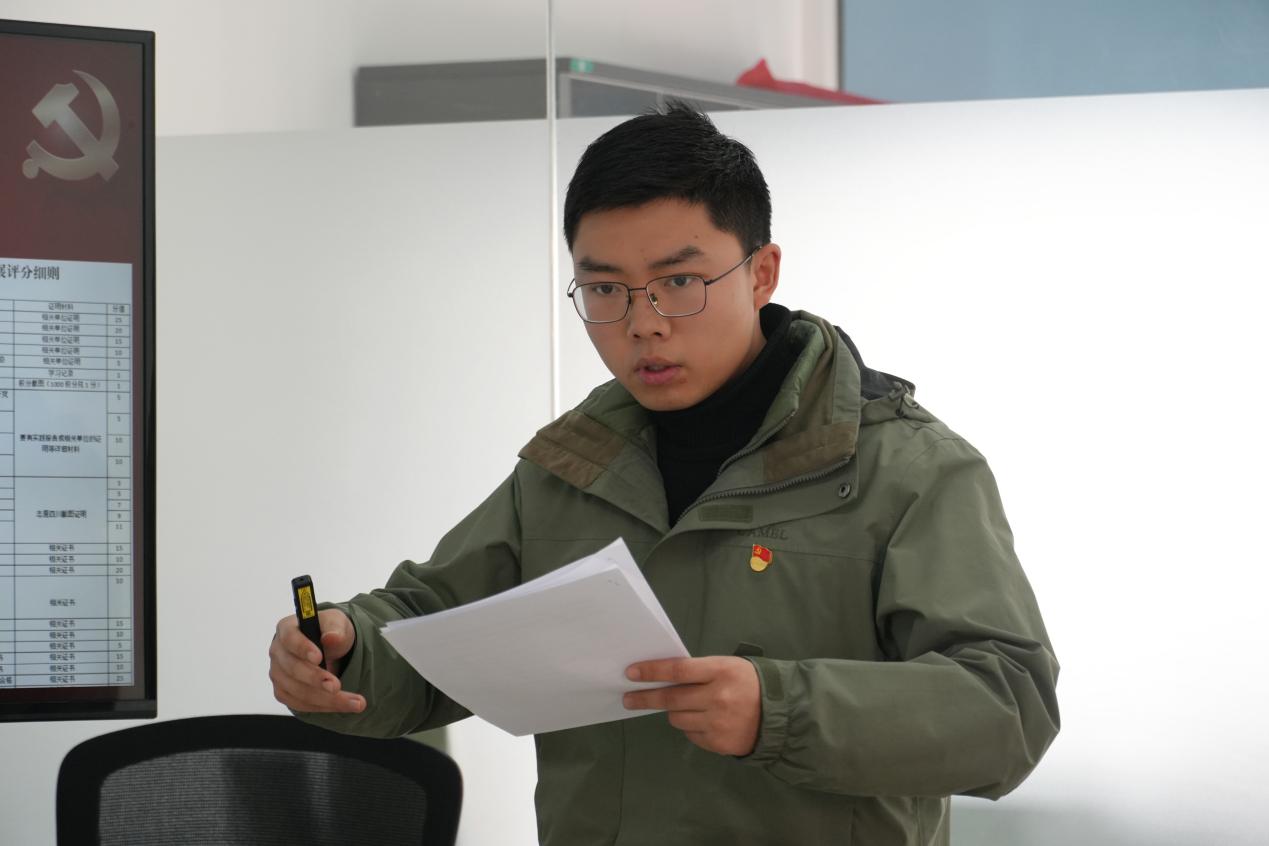 随后,学生党支部书记杜天泽同志就学生党员发展、创新思想政治引领形式等工作向党委做了详细汇报。他分享了支部在提升学生党员素质、增强党组织凝聚力等方面的创新举措和成效,同时表示学生支部在思政引领与专业特殊结合度有待提高、学生党员激励机制需要进一步完善。