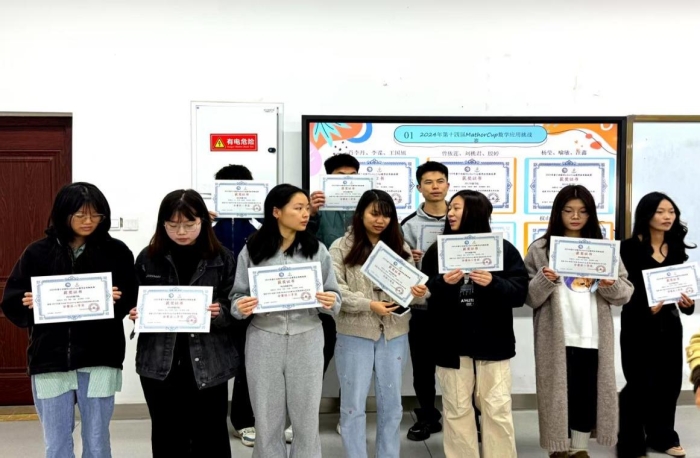 全国大学生数学建模竞赛中获奖的有:陈诗语、谢珂迪、孙佳团队,王国旭、王正、廖艳琳团队和肖李丹、马玉洁、罗茜团队,荣获四川省二等奖;胡鑫伟、赵家林、权山团队和杨瑞、喻敏、陈柯吕团队,荣获四川省三等奖。
