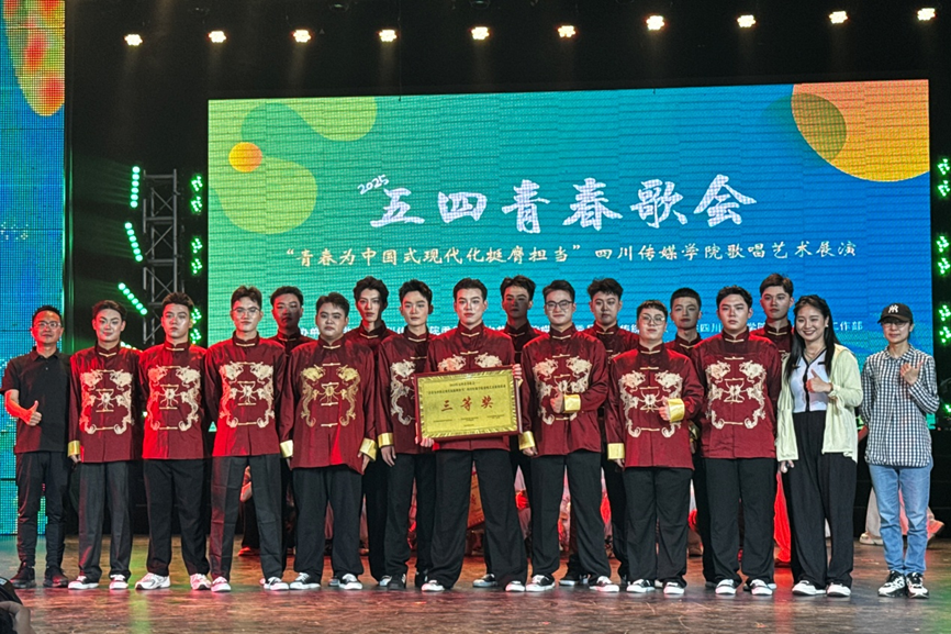 穿上帅气的唐装,和老师同学们一起在五四歌会上高唱《男儿当自强》,那份昂扬的斗志和集体的荣誉感至今难忘!当捧回三等奖奖杯时,我们深深感受到作为广电学子的骄傲与责任。