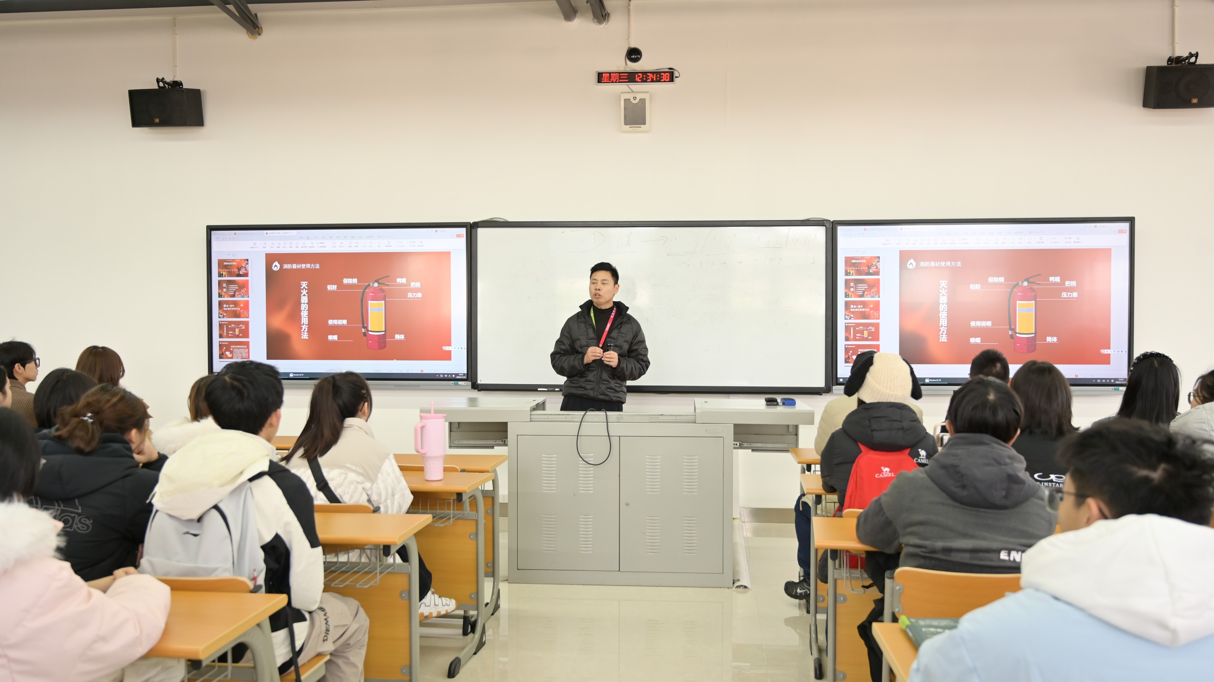 活动特邀学校保卫处陈波老师为同学们带来系统实用的消防知识讲座。陈波老师围绕日常学习生活场景,深入讲解了多个关键消防知识点:他详细介绍了灭火器“提、拔、握、压”的四字使用口诀及适用场景;强调了不私拉乱接电线、人走断电等安全用电规范;重点警示了电动车“进楼入户”、“飞线充电”的巨大危险性;并特别提醒注意“不在床上抽烟”等容易被忽视的生活细节。讲座内容深入浅出,同学们全神贯注,纷纷表示受益匪浅。