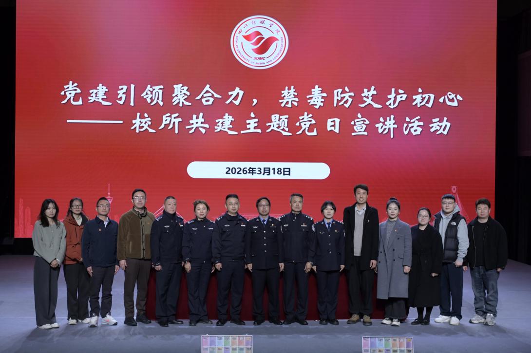 为进一步深入学习贯彻党的二十大精神,推动基层党组织建设与禁毒防艾工作深度融合,3月18日下午,智慧广电学院分党委、电影学院分党委与四川省成都戒毒康复所党支部联合主办的“党建引领聚合力,禁毒防艾护初心”校所共建主题党日宣讲活动,在西区2A8-106教室顺利举行。本次活动旨在依托校所联动、资源互补的优势,以党建引领筑牢禁毒防艾防线,践行“禁毒为民、育人为本”的责任使命。