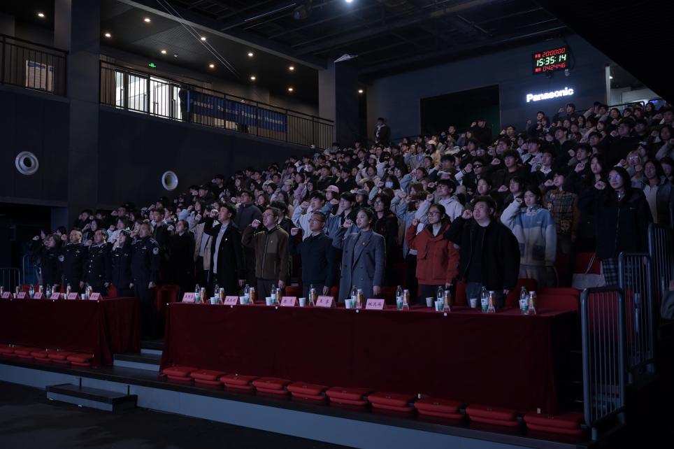 宣讲环节,四川省成都戒毒康复所管理教育科石海涛同志作专题分享。这位常年奋战在戒毒矫治一线的基层干警,将多年工作经验凝练为一个个真实案例:从新型毒品的伪装外衣,到吸毒者坠入深渊的人生轨迹;从艾滋病的传播途径,到毒品与艾滋病之间的隐秘关联。翔实的数据、触目惊心的对比图片、当事人的沉痛教训,在他的讲述中层层铺展。台下师生凝神静听,那些原本停留在宣传册上的冰冷知识,在这一刻变得具体而深刻。宣讲不仅揭露了毒品对个人、家庭和社会造成的巨大危害,让“珍爱生命、远离毒品、预防艾滋”的理念入脑入心。