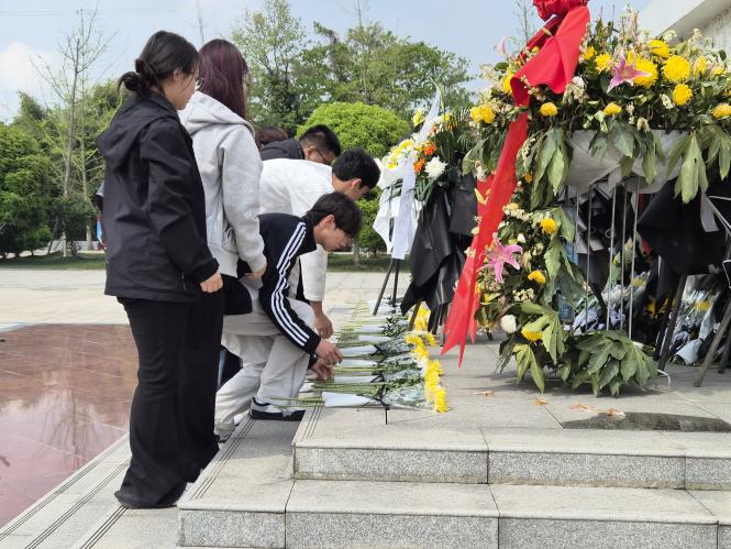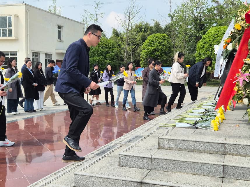纪念馆参观完毕后,全体人员移步至烈士墓碑前,自觉肃立,集体默哀三分钟,以无声的致敬追思革命先烈的不朽功绩,寄托对先烈们的深切缅怀之情。默哀结束后,大家手持精心准备的鲜花,缓步上前、依次敬献,以朴素而庄重的方式,表达对革命先烈的崇高敬意与深切悼念。